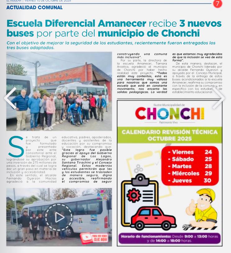 Noticias Chonchi: Escuela Diferencial Amanecer recibe 3 Nuevos Buses por parte del municipio especialmente acondicionado por más de 275 millones de pesos. Leer más » octubre 9, 2025 3:02 pm