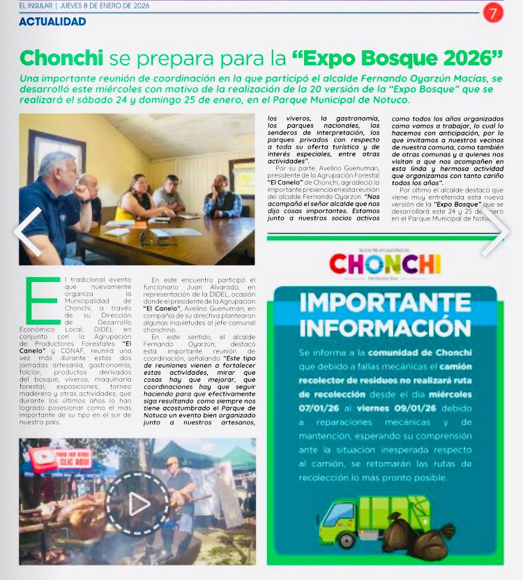 Noticias LA EXPO BOSQUE DE CHONCHI SE CONSAGRA CADA VEZ MÁS A NIVEL REGIONAL. ver noticia enero 26, 2026 3:11 pm
