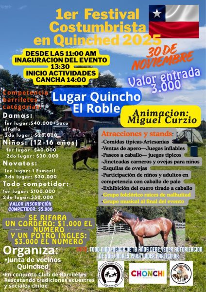 En Noticias 0 ESTE DOMINGO 30 DE NOVIEMBRE SE REALIZARÁ EL “PRIMER FESTIVAL COSTUMBRISTA” DE QUINCHED.