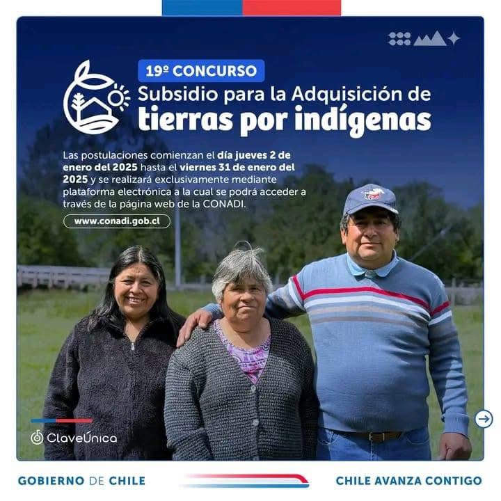 Recuerden que tienen tiempo hasta el 31 de enero de 2025 para presentar sus postulaciones al 19° Concurso de Adquisición de Tierras por Indígenas