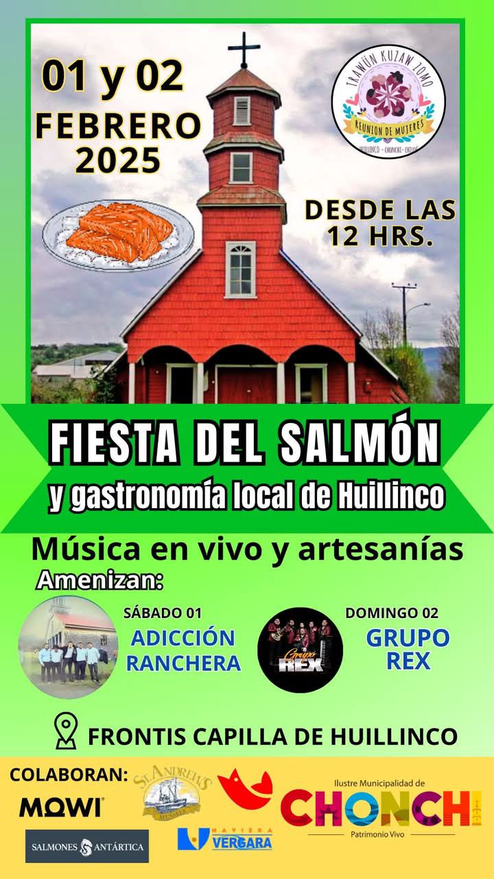 Te invitamos a la “Fiesta del Salmón y Gastronomía de Huillinco”, este 1 y 2 de febrero, ricos platos típicos, artesanía y música y bailes tradicionales.
