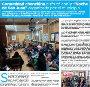 Noticias LA BIBLIOTECA PÚBLICA MUNICIPAL DE CHONCHI INVITA A DISFRUTAR DE LA NOCHE DE SAN JUAN Leer más » junio 19, 2025 8:23 am