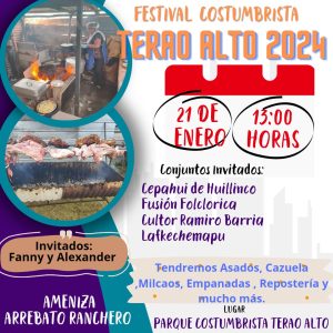 La junta de vecinos de Terao Alto invita a la cuarta versión de su “Fiesta Costumbrista” que realizará el domingo 21 de enero, a partir de las 13 horas.