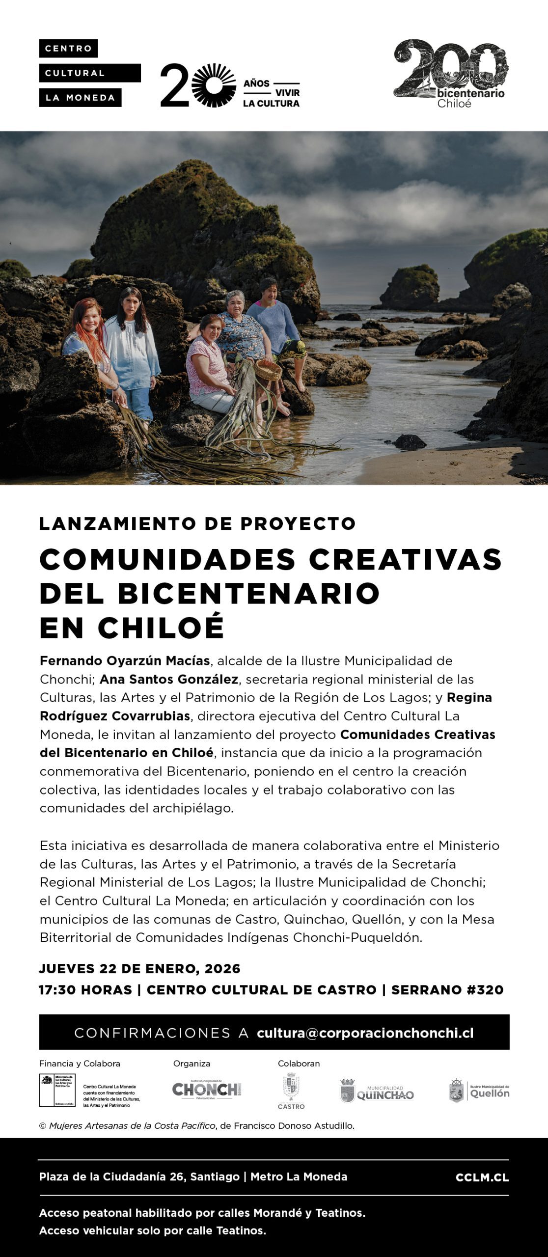 enero 21, 2026 - En Noticias Por Emilio Soto Andrade 0 LANZAMIENTO DE PROYECTO COMUNIDADES CREATIVAS DEL BICENTENARIO EN CHILOÉ Anterior MÁS DE 15 MIL PERSONAS DISFRUTARON CON LA “EXPO OVINA 2026” DE CHONCHI. Siguiente ¡Taller de Telar Decorativo para niños y niñas!