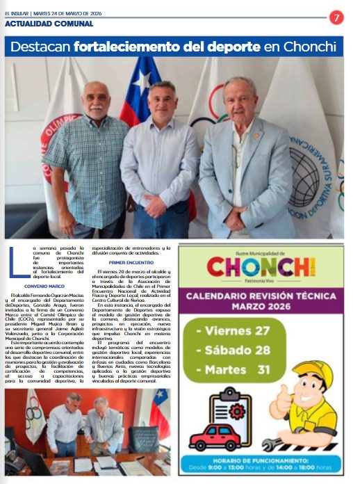 marzo 24, 2026 Por Emilio Soto Andrade Comment off Destacan fortalecimiento del deporte en Chonchi Anterior Luz verde para la construcción del Centro Comunitario de Huicha-Pucatué en Chonchi Siguiente Alcalde Fernando Oyarzún «Nuestra principal preocupación son las familias»