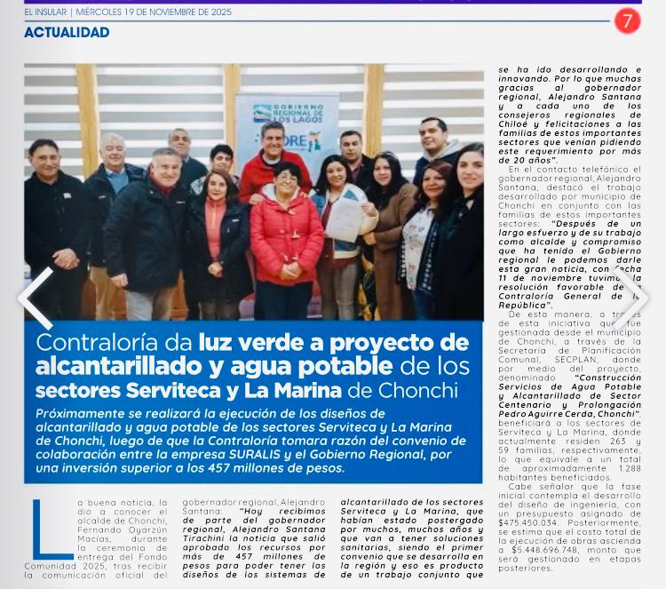 noviembre 20, 2025 Por Emilio Soto Andrade Comment off proyecto alcantarillado y agua potable Anterior PUBLICACION EL INSULAR 14 DE NOVIEMBRE Siguiente comunidad indigena cayun catiao recibe resolucion de aplicabilidad conadi