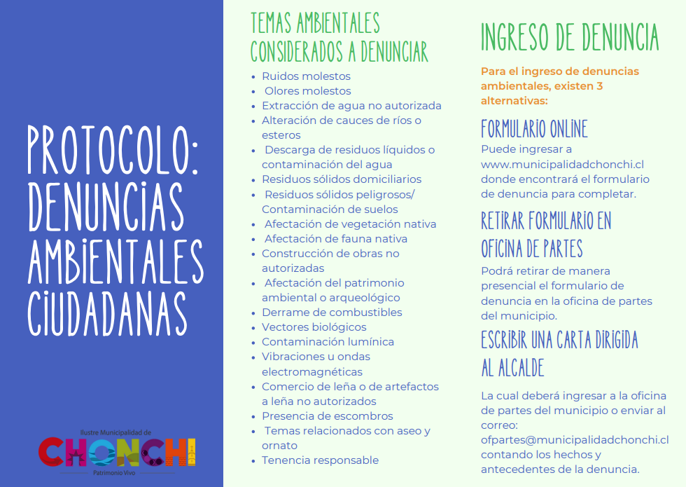 Para el ingreso de denuncias ambientales a la Municipalidad de Chonchi, existen tres