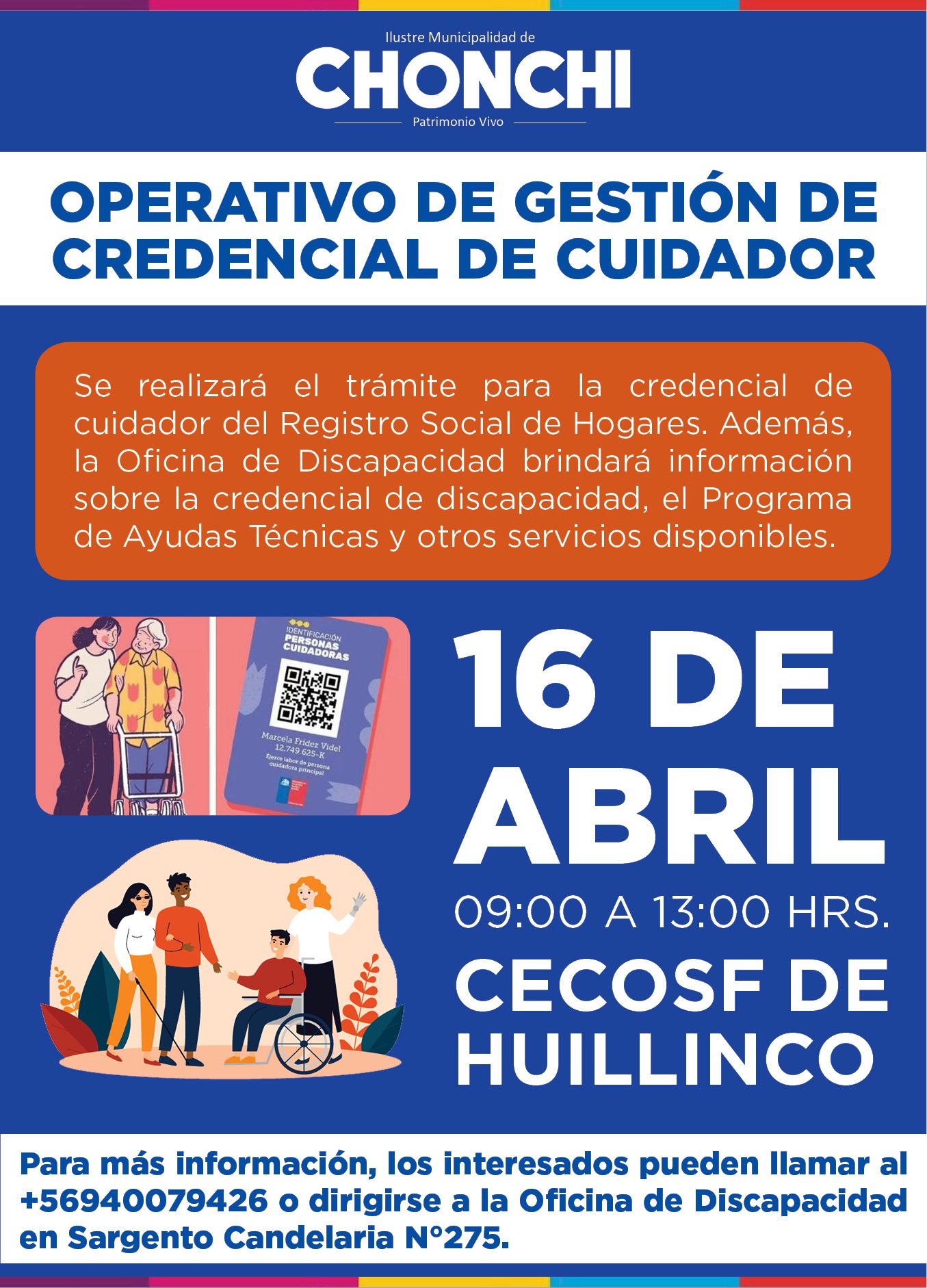 Se realizará el trámite para la credencial de cuidador del Registro Social de Hogares. Además, la Oficina de Discapacidad brindará información sobre la credencial de discapacidad, el Programa de Ayudas Técnicas y otros servicios disponibles.
